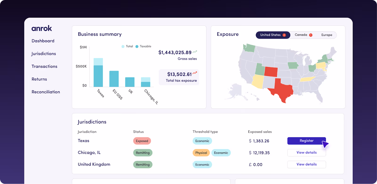 Anrok specializes in sales tax for US-based SaaS companies. The platform integrates deeply with billing tools like Stripe and Chargebee, automatically syncing subscriptions and calculating tax. Their nexus monitoring is solid, and the automation handles most standard SaaS scenarios without manual intervention.