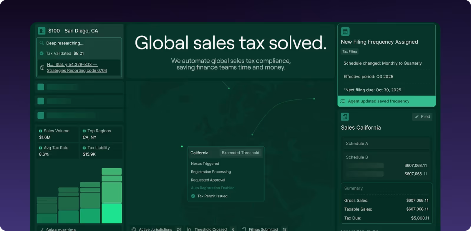 This shift from periodic tax prep to continuous compliance is why finance teams are drowning. You can't review nexus once a year when every transaction might create nexus. You can't update tax rates annually when they change year round. You need systems that monitor, calculate, and comply in real time. That's where AI-driven sales tax solutions come in.