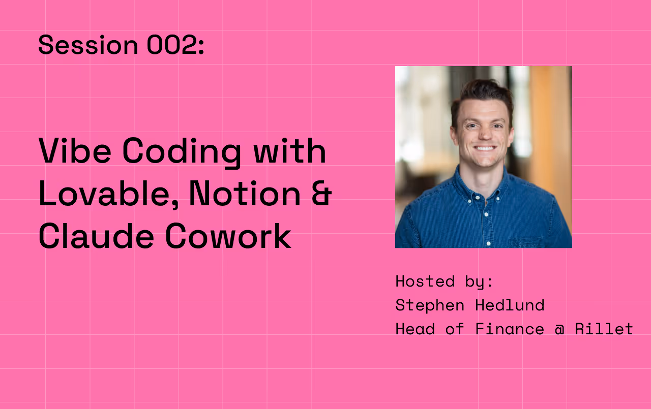 Sessions run every Friday for 60 minutes, hosted by Stephen Hedlund, Head of Finance at Rillet. Registration is free and all sessions are recorded and posted on this page.